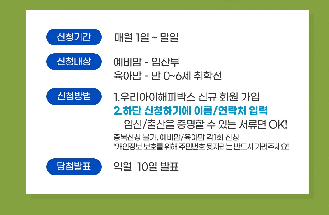 | [맘스홀릭베이비] 임신 축하 박스 무료 증정 이벤트 (~3/31) (1) | 2024.03.07 |